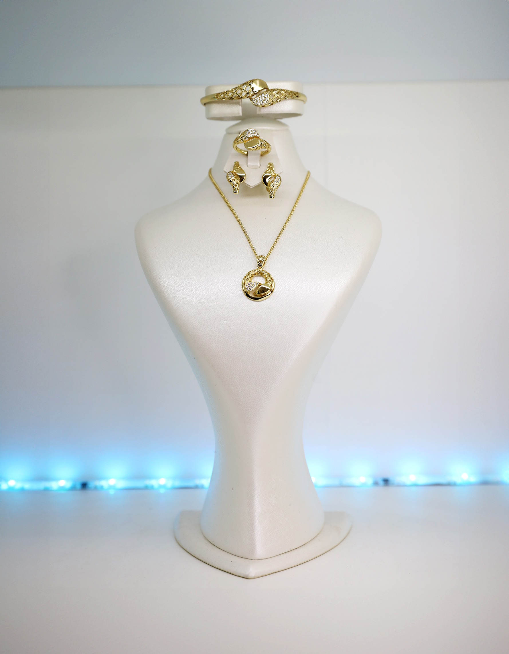 Een elegante juwelenset die perfect is voor elke gelegenheid. Deze set omvat een ketting, armband en oorbellen, allemaal vervaardigd uit hoogwaardige materialen.